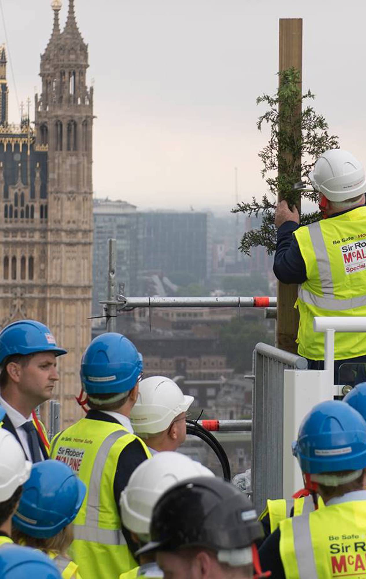 The Elizabeth Tower conservation project marked a major milestone yesterday, when the final piece of the scaffolding enclosing the 96m high building was slotted into place.